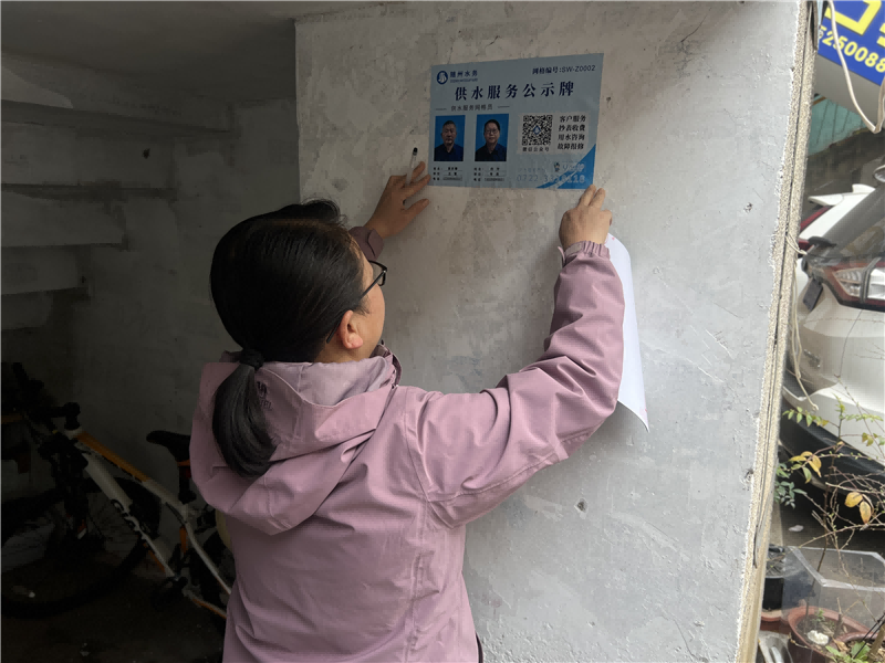 為了持續(xù)提升供水服務質(zhì)量,營造更加優(yōu)質(zhì)的營商環(huán)境,隨州市水務集團城市供水公司精心制作了5200張藍色調(diào)的供水服務公示牌,并將它們張貼于居民點的顯眼位置,實現(xiàn)了便民服務的全面覆蓋。這一舉措確保了用戶的疑問能夠隨時得到及時解答,真正做到了“小事不出網(wǎng)格,大事快速聯(lián)動”,極大地節(jié)省了用戶的時間,提高了辦事效率,讓用戶切實感受到了貼心與便捷。